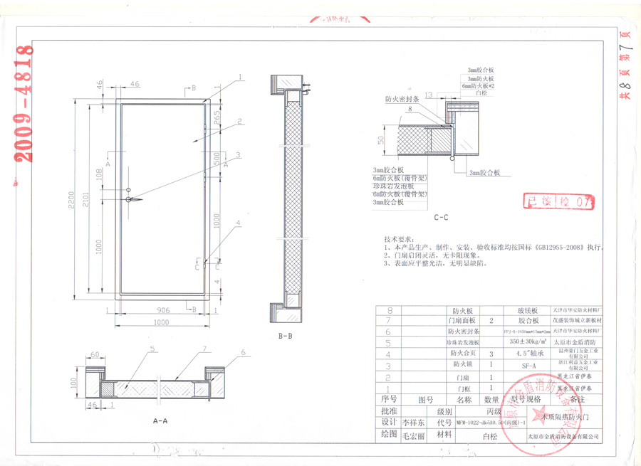 木質(zhì)丙級(jí)單開(kāi)防火門(mén)